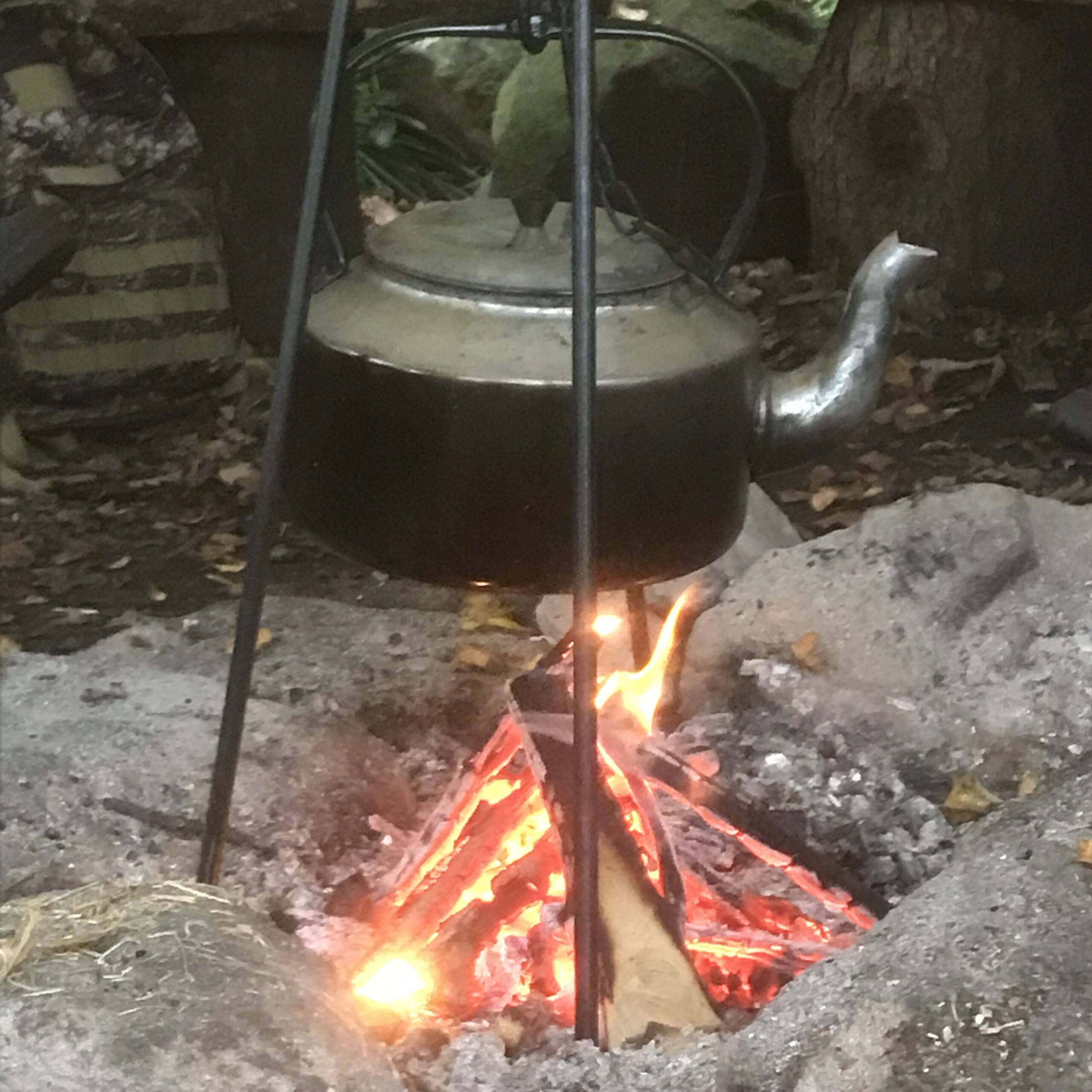 • families and friends meeting up for the day in the woods.